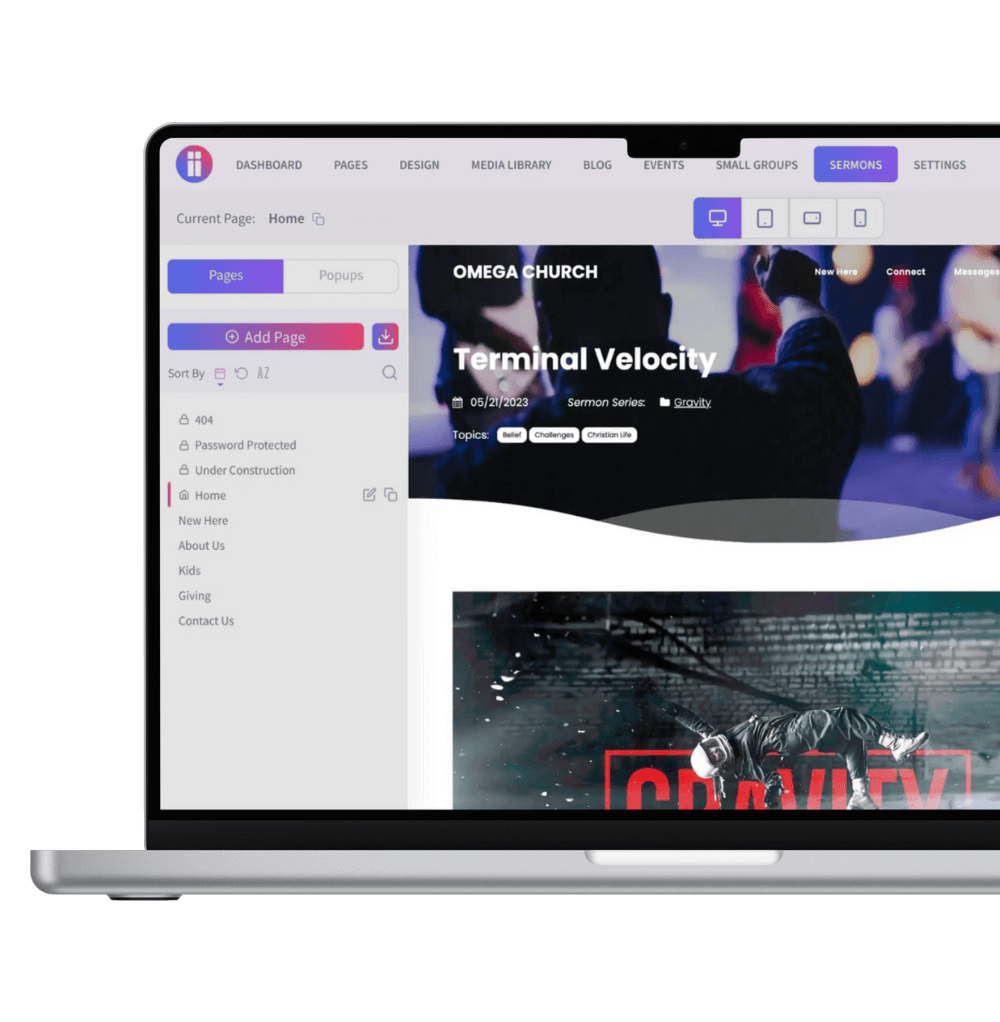 Our Management Service does not include a fully custom site from scratch, but that’s actually to your advantage. Instead, you’ll choose from nine beautifully designed, fully optimized layouts that we’ve built around our Next Steps Framework: Discover, Like, Trust, and Engage. Each design has been tested and refined to guide visitors from curiosity to connection, so you’re starting with a proven path for growth. From there, our team fits your unique content, style, brand and personality into the design you select, making it distinctly yours. This approach gives your church a site that looks custom, performs better than most “custom” builds, and is ready to reach people right away.