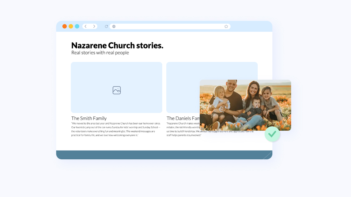 Your images tell a story long before your words do. We compress, resize, and tag every image for maximum clarity and speed. No grainy uploads, no bloated files, just sharp, optimized visuals that showcase your church beautifully while keeping your pages lightning fast.
